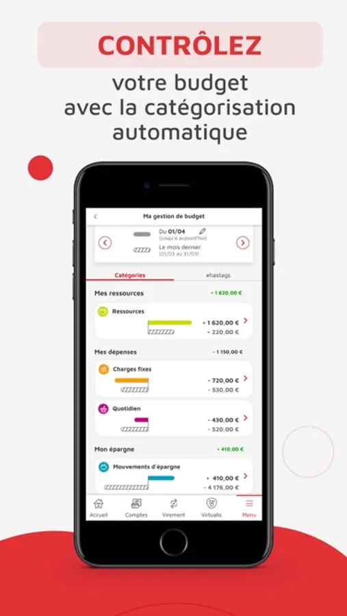 • Accéder à des outils de gestion de budget : alertes personnalisées, info solde, activation de la catégorisation automatique de vos opérations, agrégation de comptes externes.
