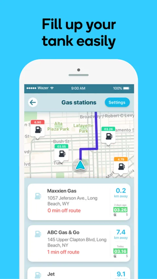 • Find gas / fuel stations & prices and EV charging stations along your route