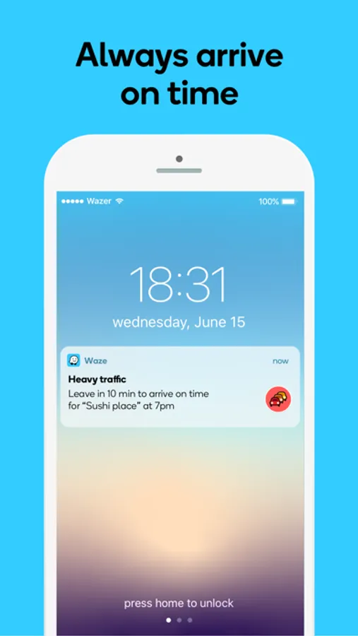 • Sync Waze to your car’s built-in display through Apple CarPlay