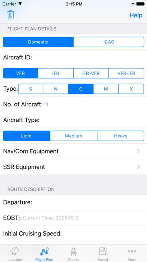 * Save Aircraft & Route details for flight notifications & SARTIMES.