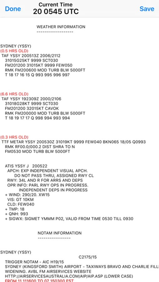 Why not use the airservicesaustralia.com website? With NAIPS for iPhone you can:
