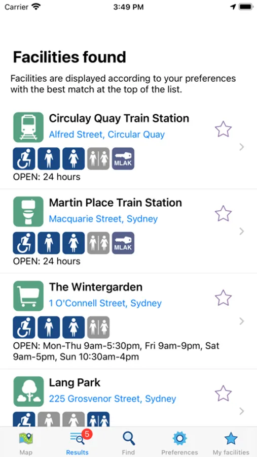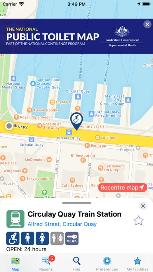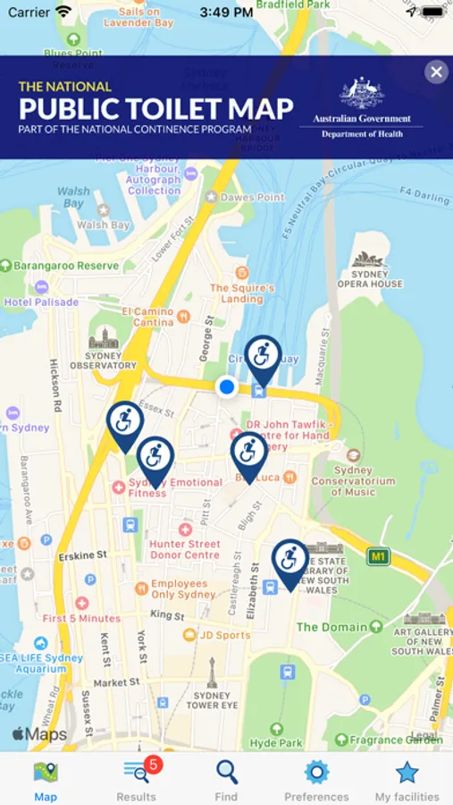 The National Public Toilet Map shows the location of more than 23,000 public and publicly available private facilities across Australia, including toilets, adult change and baby care. Information is provided about each facility, such as location, accessibility details, opening hours and features like hoists, sharps disposal and showers.