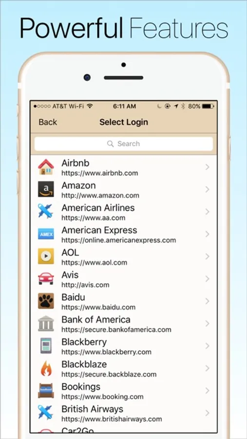 * Choose from 65 pre-configured logins such as Amazon, Paypal, etc. or make your own.