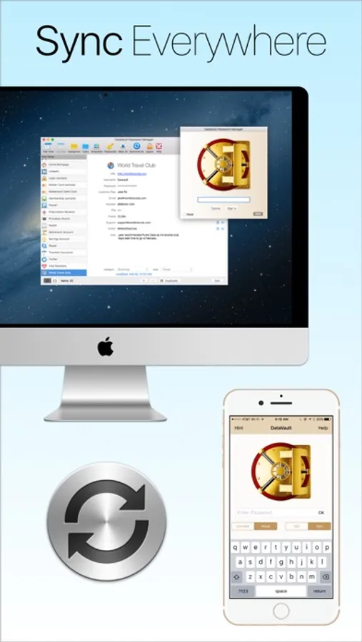 • Synchronize with DataVault for Mac (sold separately) using iCloud, Dropbox or Wi-Fi.