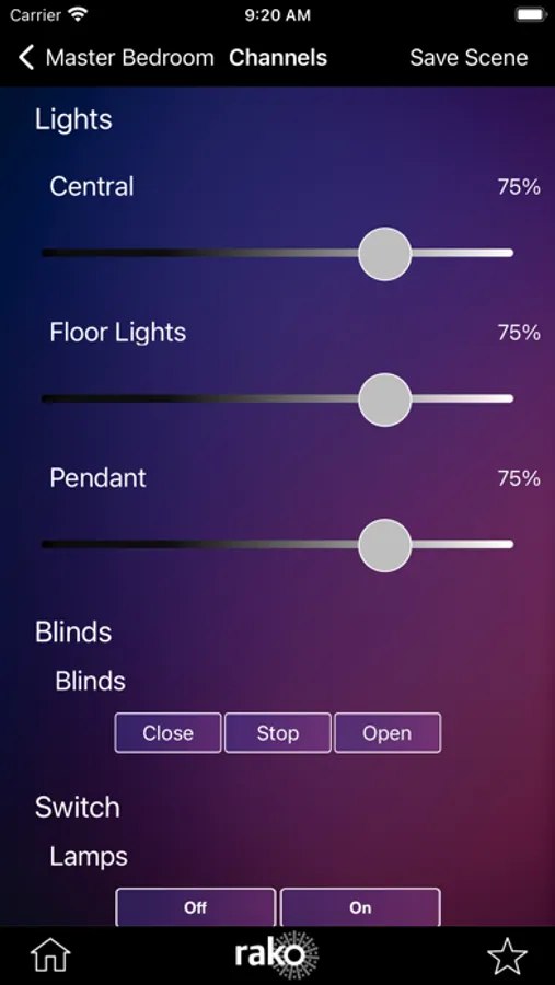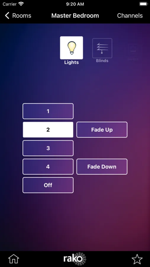 The application gives control of any room, whether it be lighting or curtain/blind control. Access to all available rooms, scenes and channels, all of which can be named for easy identification.