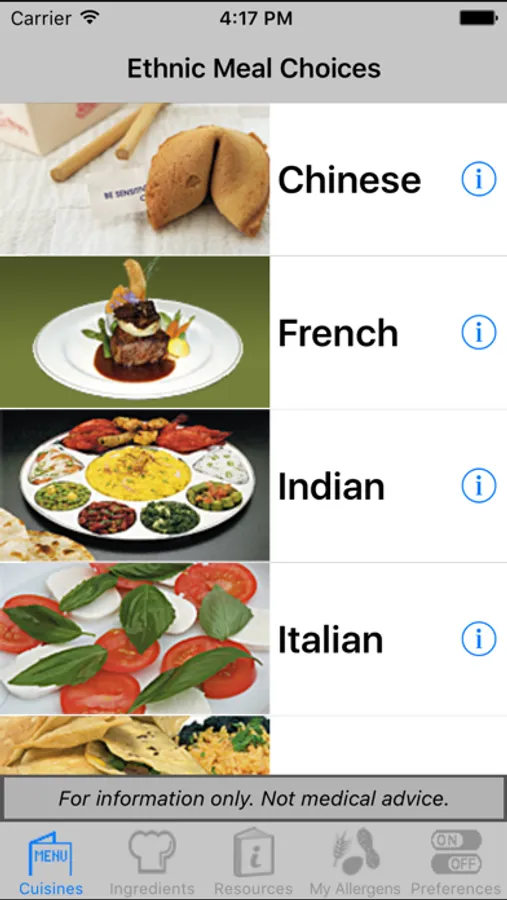 Quickly browse ethnic menu choices, ingredients, sauces, food preparation and cross contact considerations to avoid any combination of food allergens. Learn to ask questions in restaurant terms to order ethnic meals.