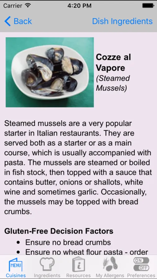Personalize your food needs with the ethnic restaurant database to confidently avoid gluten, wheat, dairy, egg, peanuts, nuts, soy, corn, fish and / or shellfish anywhere.