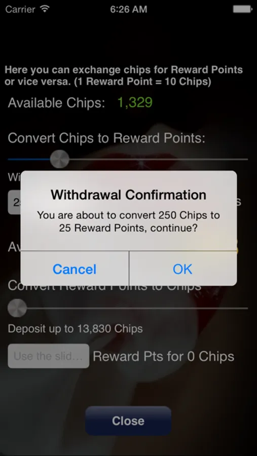 STATISTICALLY IN YOUR FAVOR, this game will reward you with chips convertible to Reward Points over the long run! Your strategy will help determine how much of an edge you will have on the house. It is possible to achieve anywhere from 25% advantage to 200% advantage over the house (triple your chips!).