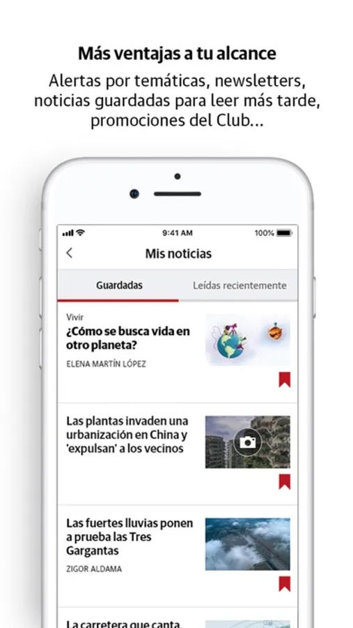 • LEER MÁS TARDE. Podrás guardar las noticias que más te interesen pulsando en el icono de favoritos para leerlas en cualquier otro momento o en otro dispositivo. Esta útil funcionalidad también funciona con vídeos y galerías de fotos.