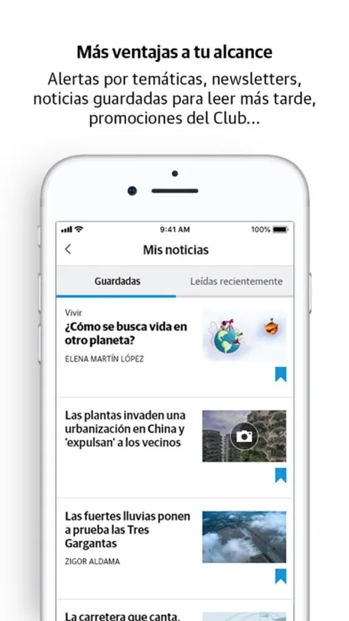 • LEER MÁS TARDE. Podrás guardar las noticias que más te interesen pulsando en el icono de favoritos para leerlas en cualquier otro momento o en otro dispositivo. Esta útil funcionalidad también funciona con vídeos y galerías de fotos.