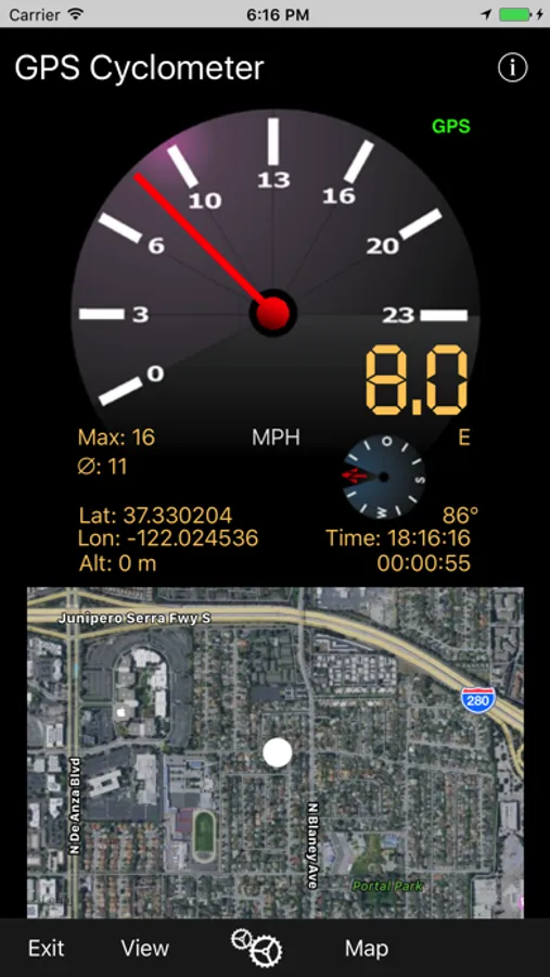 The program bases on GPS data and displays the speed analog and digital. Additionally more infomations will be displayed. There is a compass and a stop watch built in. You can set different modes: Bicycle, Moped, Car, Airplane, Sailboat. The Unit can be set for Kph, mph or knots (kn). You can use it for different vehicles.