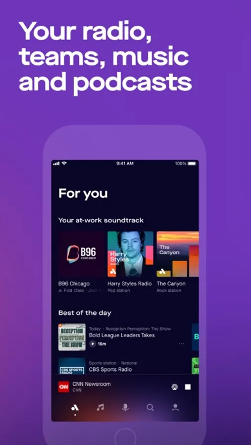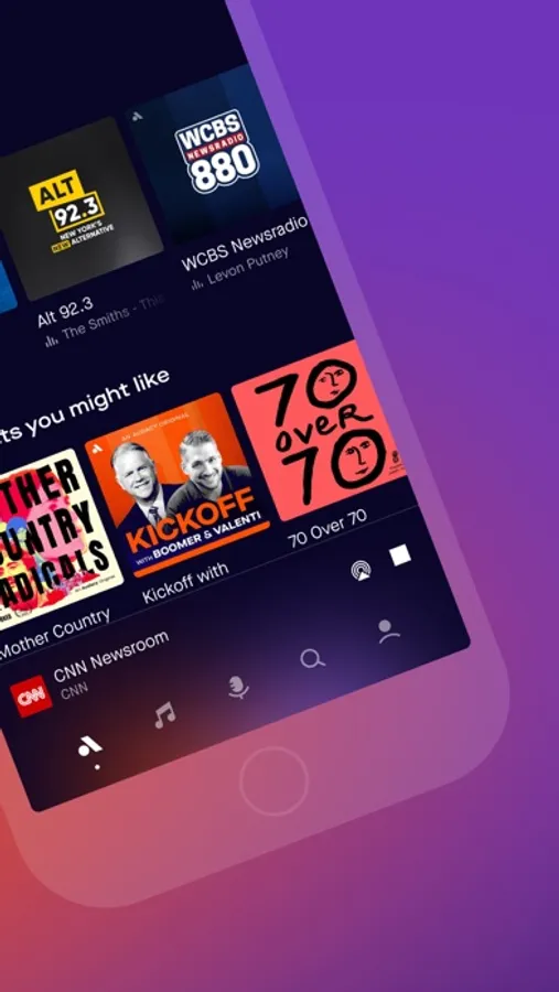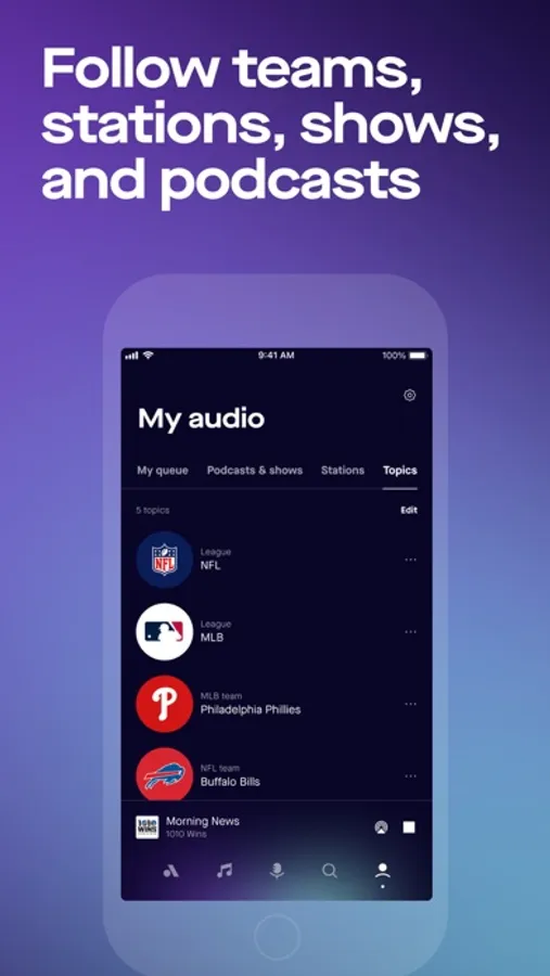 > Tap to access all your stations, teams, shows and podcasts fast.