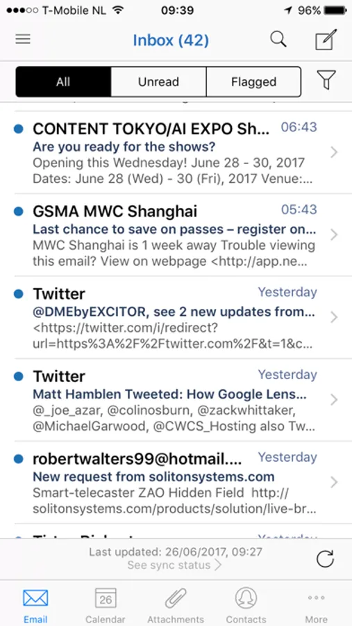 - Quickly view unread and flagged emails without accessing folders.