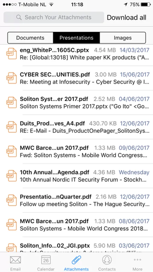 - Secure viewing and editing of attachments, Word, PowerPoint, Excel and PDF with integrated editor in the container.