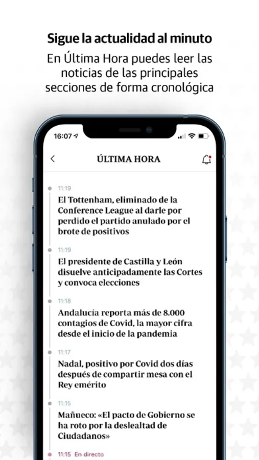 Y todo ello con los formatos que mejor se adaptan a tus necesidades en cada momento del día. Notificaciones de última hora para ser el primero en enterarte. Las mejores fotos y los videos más impactantes de los temas de actualidad que más interesan, reportajes en profundidad y especiales interactivos para que profundices en nuestros contenidos.