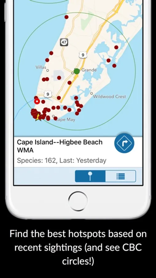 • See customized lists of birds reported recently near you, at birding hotspots, or any random point on earth!