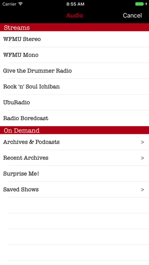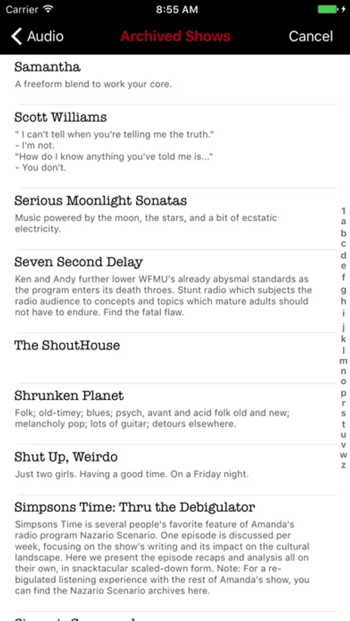 - Listen to archives and podcasts of your favorite shows (new: rewind and fast-forward features), and download them for offline listening (via wifi only).