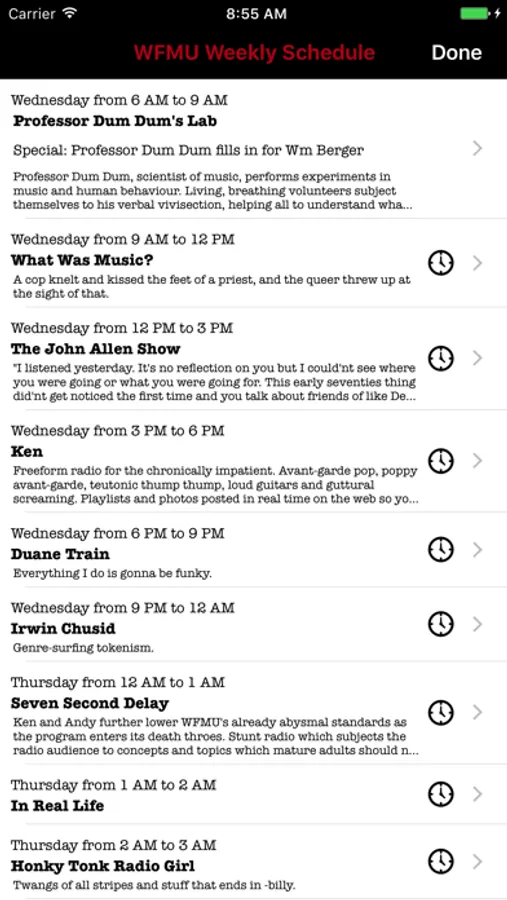 - Enable notifications to schedule an alert so you don't miss the next episode of your favorite show on the WFMU stream.