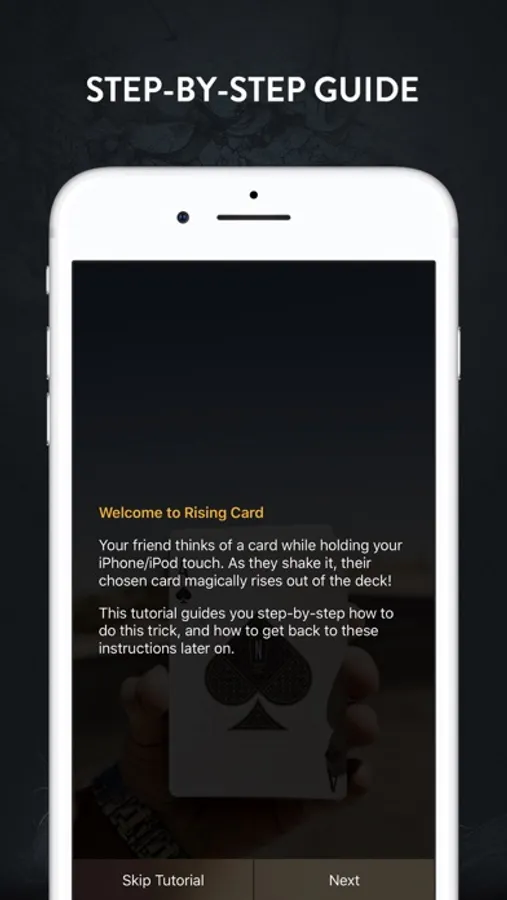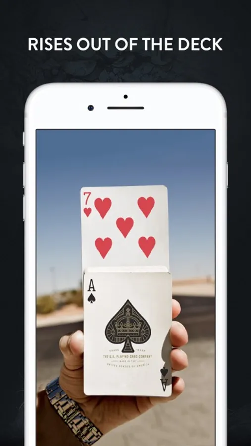 Ask your friend to name any card in the deck. It can be *any* card. Then bring out your iPhone or iPod Touch and let them open the Rising Card app. It displays a photo of a deck of cards. Ask them to think about their card, and then shake the device. As they shake, the card they were thinking about *visibly rises* out of the deck.