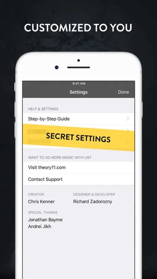 This app showcases a brilliant method pioneered by critically acclaimed magician Chris Kenner (executive producer for David Copperfield). It is *very* easy to use, and it will work no matter which card your friend names.