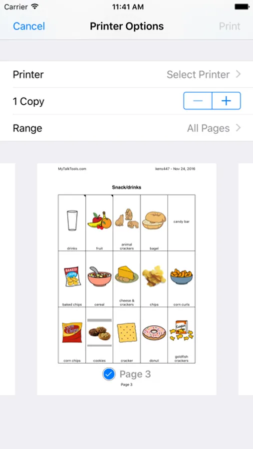 Variable cell sizes, drag-and-drop arrangement, copy or link pages, user logging with geo-context to provide continuous refinement. Search MyTalkTools content using apple global search. Integrate with apps – like Pandora, FaceTime or others. Integrate pages with automatic reminders or geo-location reminders (Continued use of GPS running in the background can dramatically decrease battery life). Multiple authors can support a single page using our patented sync technology to merge all changes. Many, many user interface customization options.