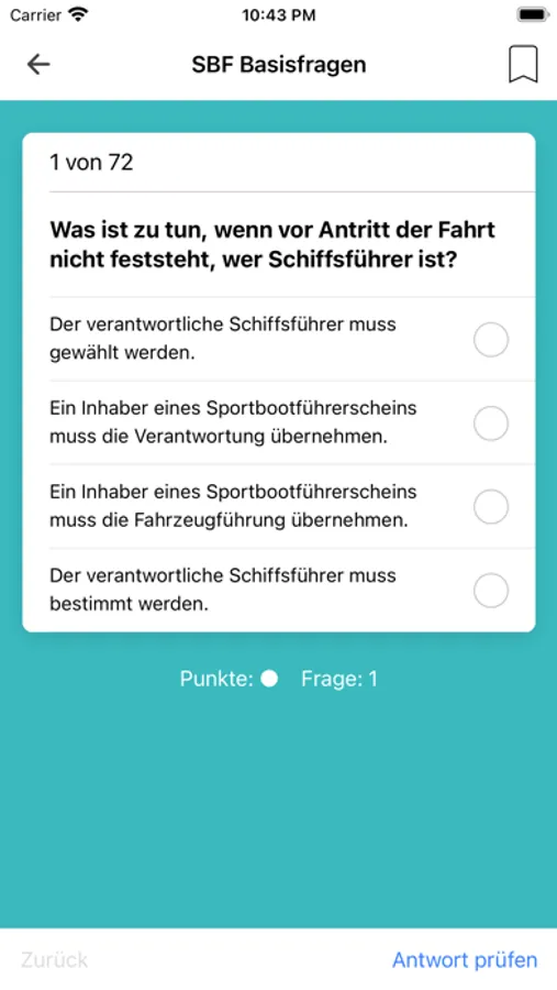 Dieses Programm bietet Dir die Möglichkeit, für den theoretischen Teil des Sportbootführerscheins-See zu üben.