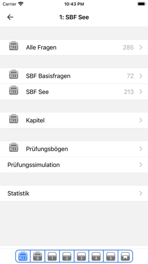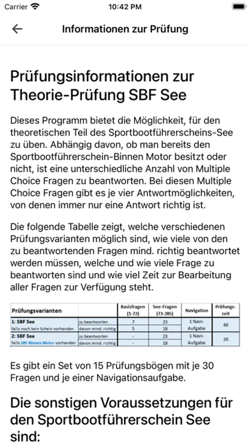 Die Navigationsfragen sind hier nicht enthalten, weil der Umgang mit dem Navigationsbesteck nicht auf dem iPhone oder iPod Touch geübt werden kann.