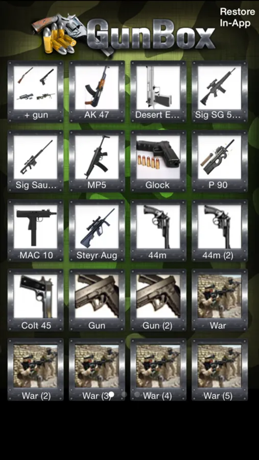 Turn your iphone/ipod into a firearm with the gunbox! Select the weapon and the setting of your choice and touch the image or shake the device to shoot.