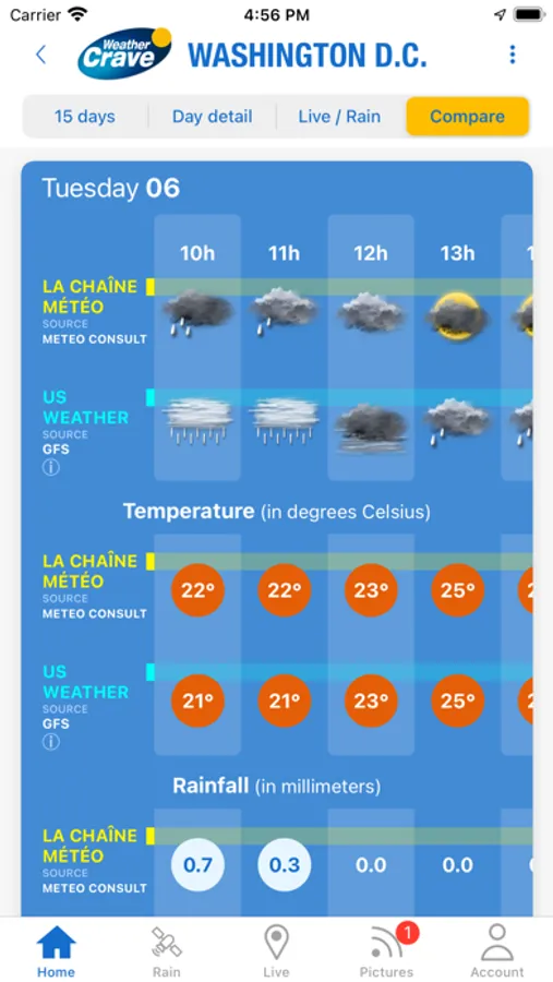 Weather Crave makes your life easier: view, on a single screen, the forecast for the 3 most popular weather models in France: