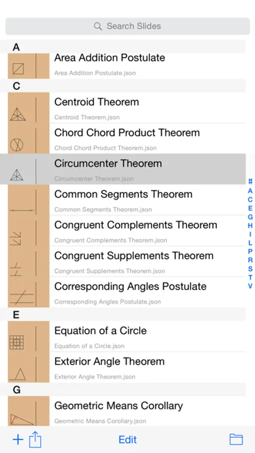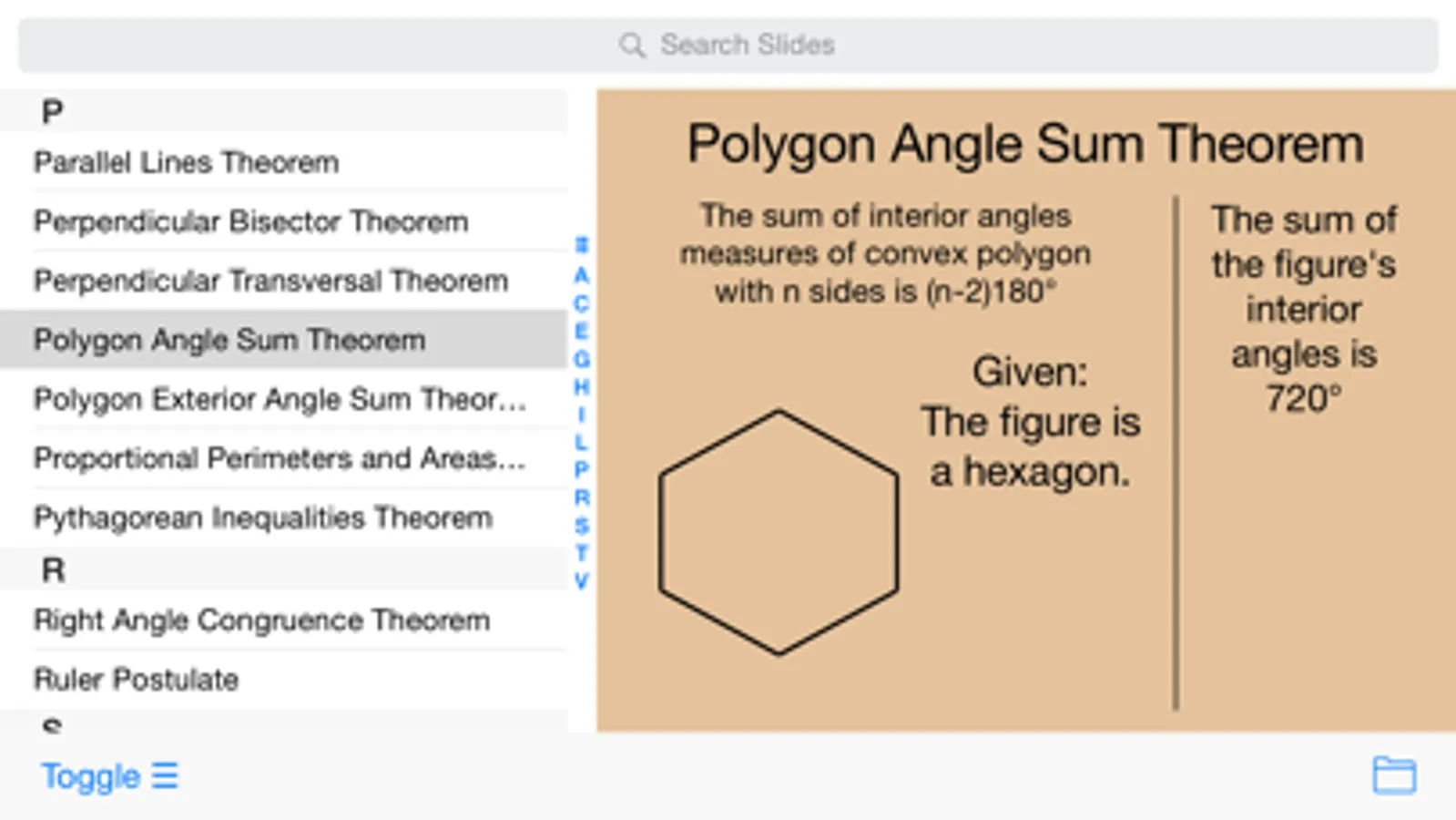 Reviewing geometry on the go has never been easier. Just swipe to a term to view its description and diagram!