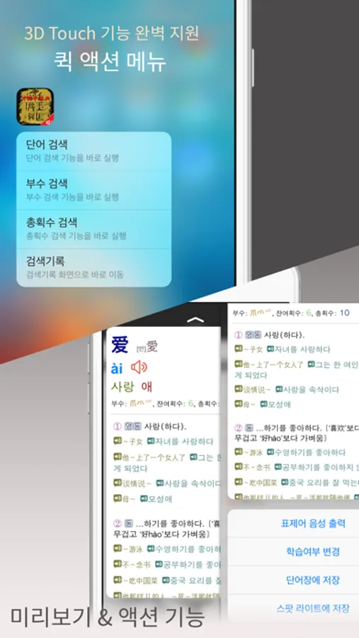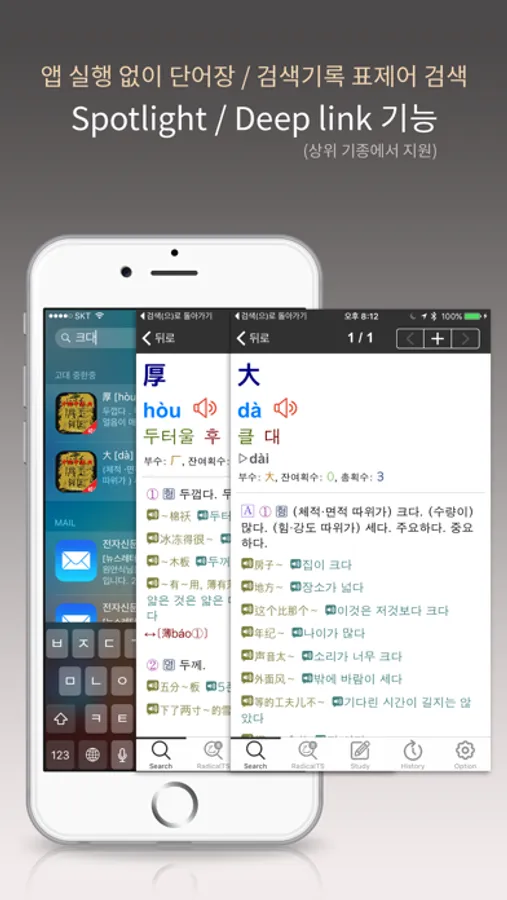 ● 주요 중한/한중 사전 최초로 iPhone XS, iPhone XR, iPhone XS Max, iPad Pro 단말기 해상도 지원 ●