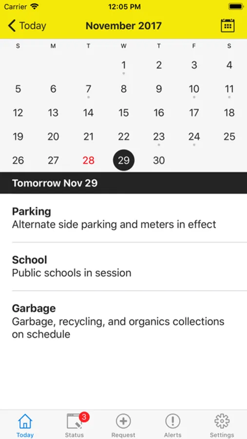 • Stay in the know. Daily status of Alternate Side Parking, trash collection, and schools is always just one tap away. You can also sign up to be notified of any updates to the normal schedule and add this year’s Parking Holidays to your mobile calendar.