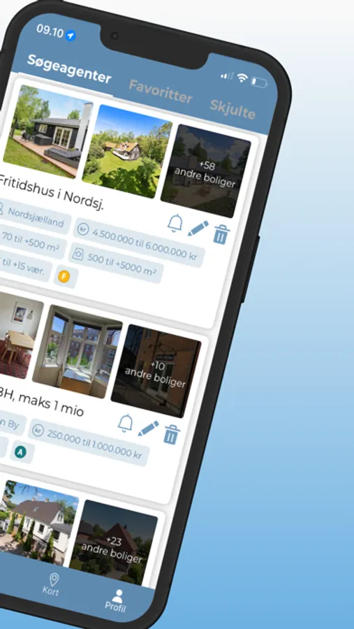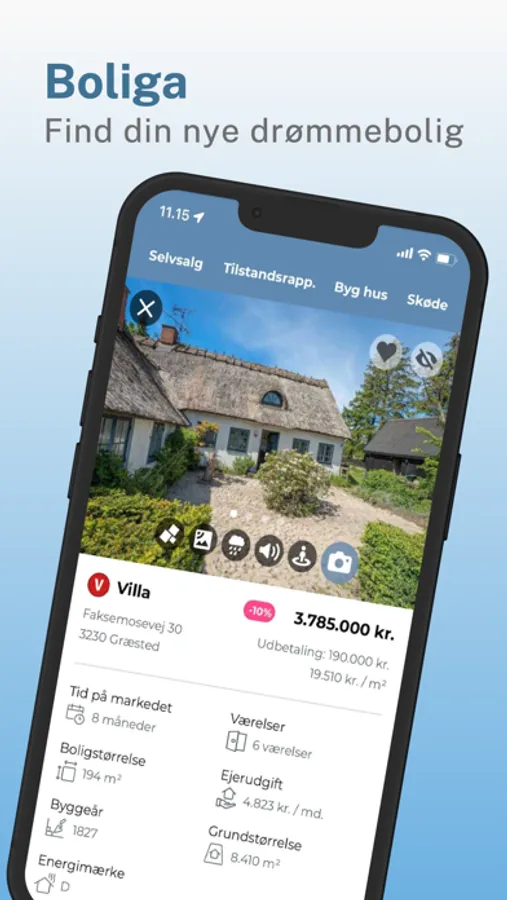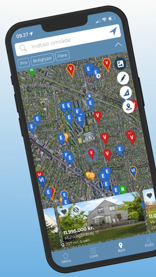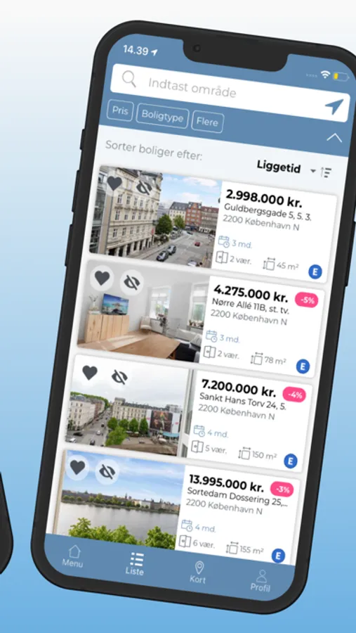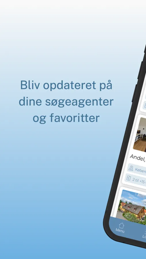 - Kortfunktion: Se boliger til salg i nærheden af dig direkte på kortet.