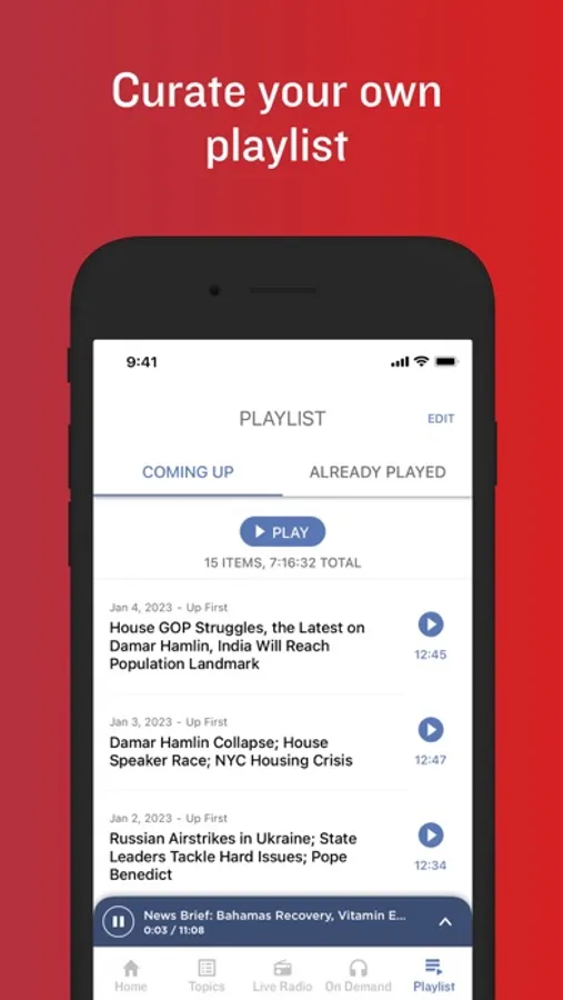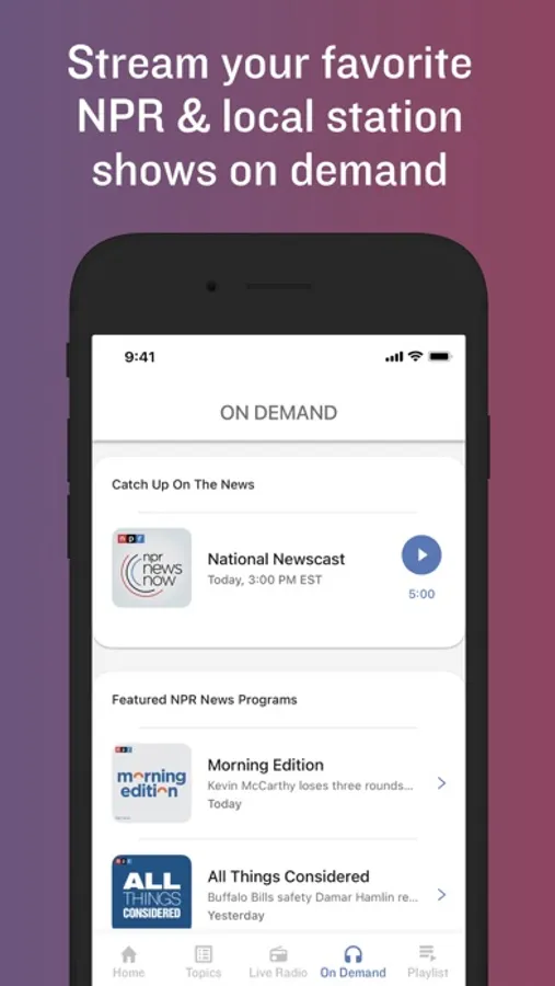 Tap into a world of stories with on-demand access to the best of NPR content—news, live radio streams, programs, and podcasts. Never miss a beat with hourly newscasts, breaking news alerts, and story feeds filtered by topic. With the NPR app, home feels close enough to touch. Stream your local station to hear the stories that matter in your community.