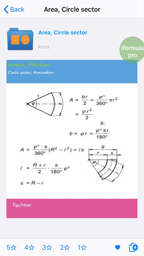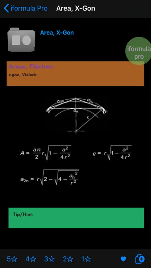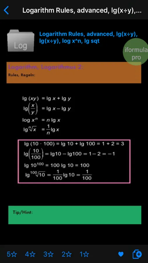 iformula (free version) app includes the following functions: