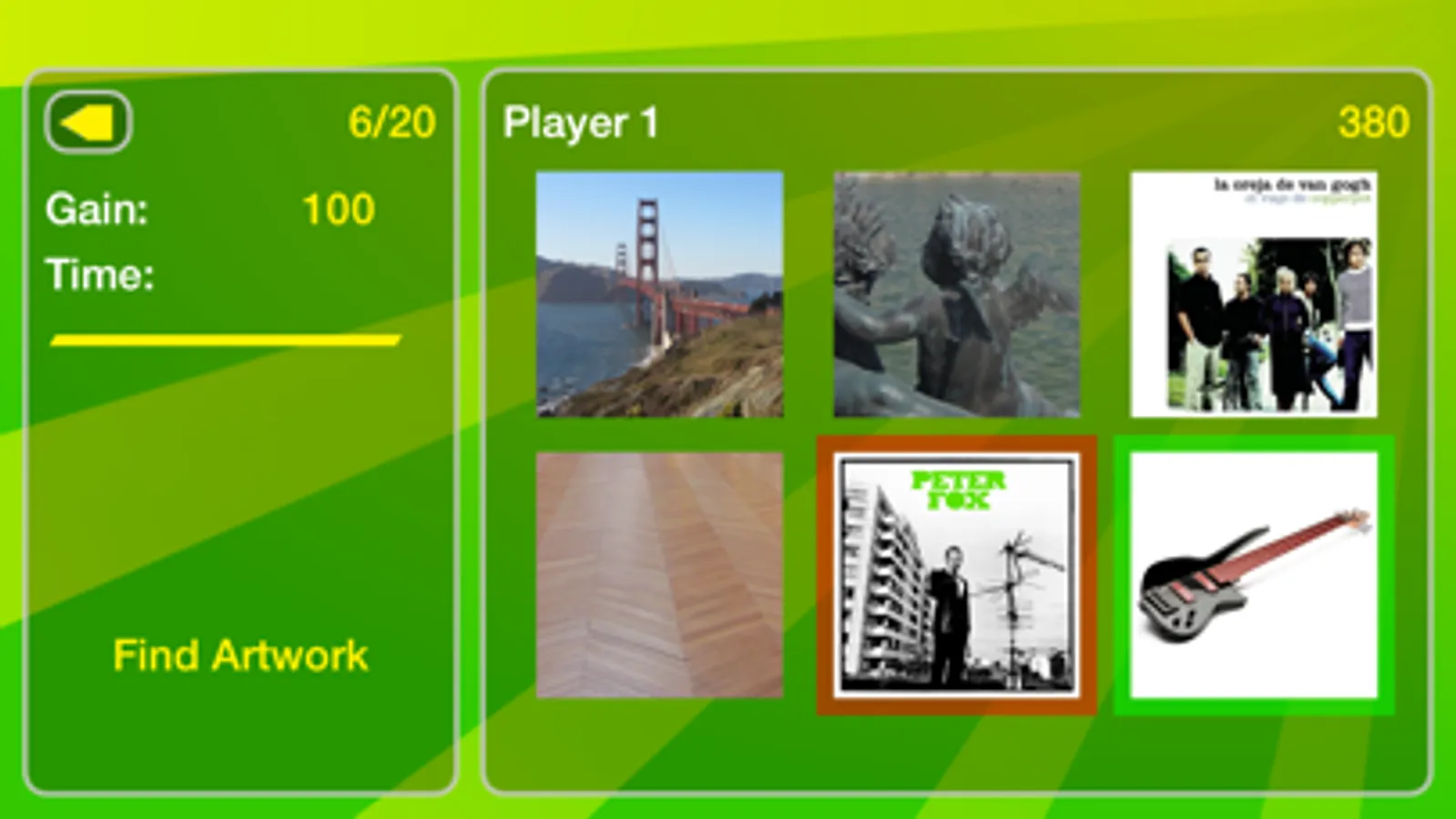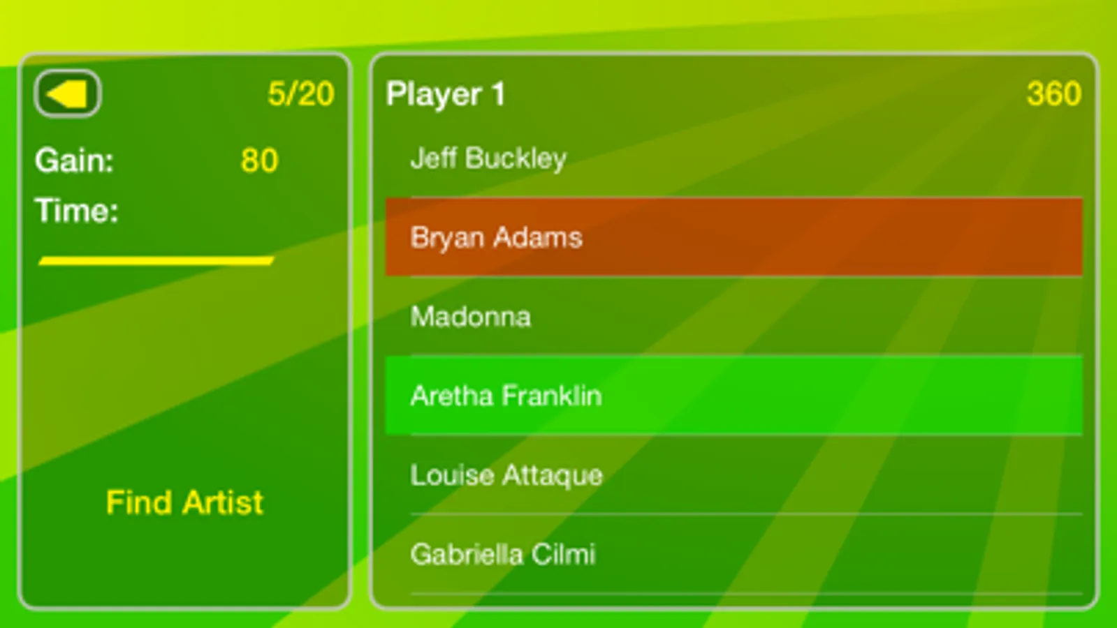 The songs come directly from your music library; they'll be good. In order to fully enjoy this quiz, you'll need at least 120 songs from at least 20 different artists loaded on your device.