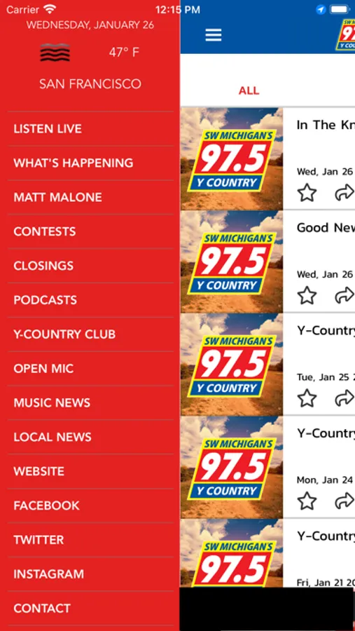 97.5 Y-Country is Southwest Michigan's Country! Listen live to catch all of your favorite Y-Country shows including the Matt Malone Morning Show, Nights With Elaina, After Midnight with Granger Smith, Fresh Picked and more! Also enter to win get contests, check out our podcasts, send us voice clips using the open mic feature, and more! All for free!