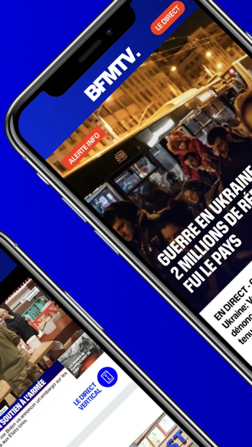 • Le direct TV de BFMTV avec la fonctionnalité « Le Direct Vertical » qui vous permettra de suivre le direct à la verticale sur votre smartphone : un confort de lecture et une expérience plus adaptée à nos usages.
