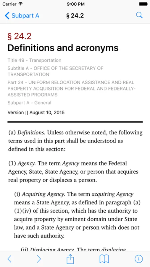 LawStack's complete Title 49 Code of Federal Regulations (CFR) - Transportation, in your pocket. Frequent updates! Leave the heavy books at home and buy this app now.