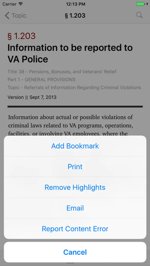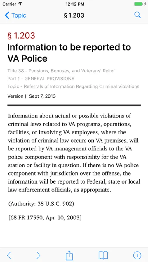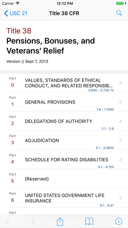 LawStack's complete Title 38 Code of Federal Regulations (CFR), Pensions, Bonuses, and Veterans' Relief. Leave the heavy books at home and buy this app now.