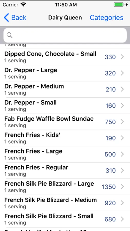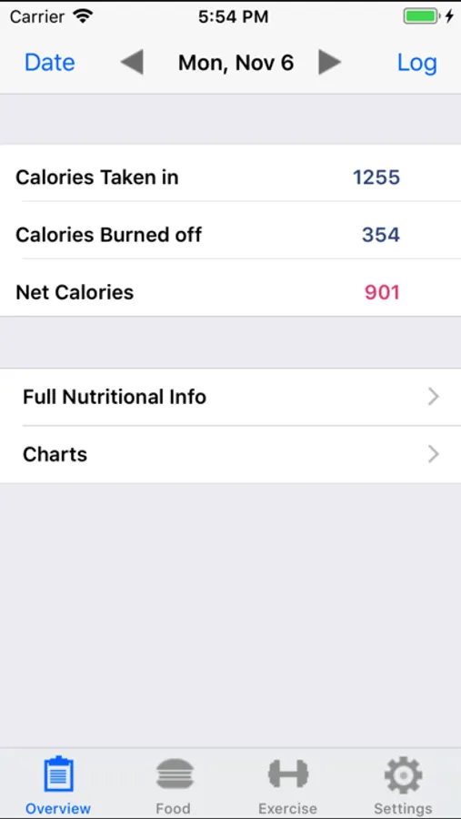 * Full screen graphs on Calories, Total Fat, Saturated Fat, Trans Fat, Cholesterol, Sodium, Carbohydrate, Dietary Fiber, Sugars, and Protein