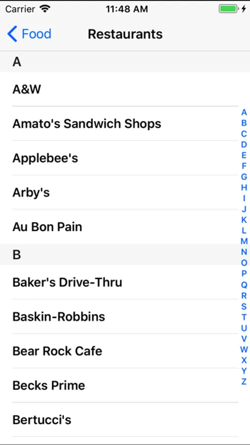 * A&W * Amato's Sandwich Shops * Applebee's * Arby's * Au Bon Pain * Baker's Drive-Thru * Baskin-Robbins * Bear Rock Cafe * Becks Prime * Bertucci's * Better Burger NYC * Blue Burrito Grille * Bob Evans * Bojangles' * Boston Market * Buffalo Wild Wings * Bugaboo Creek Steakhouse * Burger King * Captain D's * Carl's Jr. * Cheesecake Factory * Chick-fil-A * Chili's * Chipotle Mexican Grill * Chuck E. Cheese's * Church's Chicken * CiCi's Pizza * CoCo's * Cold Stone * Creamery * Culver's * Dairy Queen * Del Taco * Denny's * Domino's Pizza * Dunkin' Donuts * Eat'n Park * Edo Japan * Einstein Bros. Bagels * El Pollo Loco * Fazoli's * Good Times * Hardee's * Harvey's * Hoss's Steak & Sea House * IHOP * In-N-Out Burger * Jack In The Box * Jamba Juice * Jason's Deli * Jimmy John's * Keg * Kelsey's * KFC * Kings Family Restaurant * Krispy Kreme * Krystal * Little Caesars Pizza * Long John Silver's * Manchu Wok * McDonald's * Mr. Sub * New York Fries * Not Your Average Joe's * Nothing but Noodles * O'Charley's * Old Spaghetti * Olive Garden * Orange Julius * Outback Steakhouse * P.F. Chang's * Panda Express * Panera Bread * Papa John's Pizza * Papa Murphy's * Pizza Hut * Pizza Pizza * Popeyes * Qdoba * Quiznos * Red Lobster * Ruby Tuesday * Ruby's Diner * Salad Spinners * Sbarro * Sizzler * Skyline Chili * Smoothie King * Sonic Drive-In * Sonny's Bar-B-Q * Souper Salad * Starbucks * Steak 'n Shake * Subway * Sweet Tomatoes/Souplantation * T.G.I. Friday's * Taco Bell * TCBY * Texas Roadhouse * Texas Steakhouse & Saloon * Tim Hortons * Wendy's * Whataburger * White Castle * WingStreet * Zaxby's * Zoup!