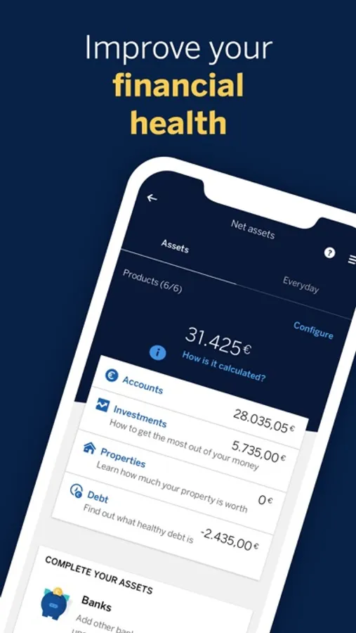 Start saving and controlling your accounts, even those of your other banks, from a single place.
