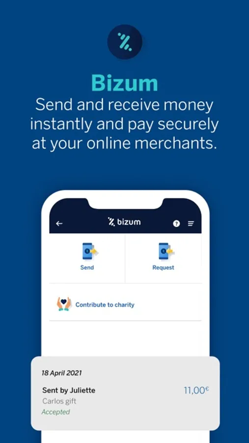 Send and receive money instantly. All you need to do is give your phone number or know the recipient's number. In addition, you can now use Bizum to pay at online merchants easily and securely from the App.