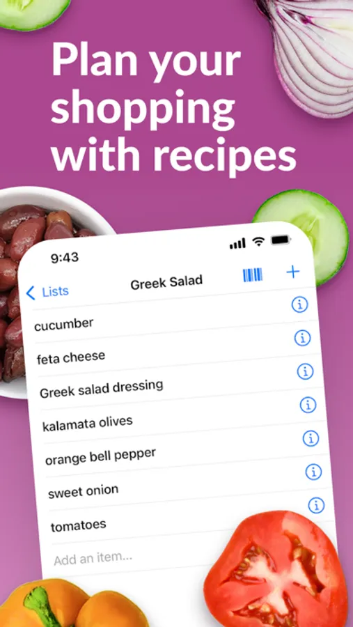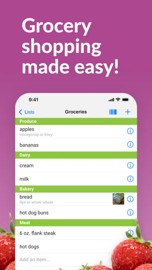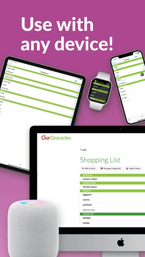 • Add items with your voice using Siri on your iPhone, Watch, or HomePod. Supports other popular voice assistants too.