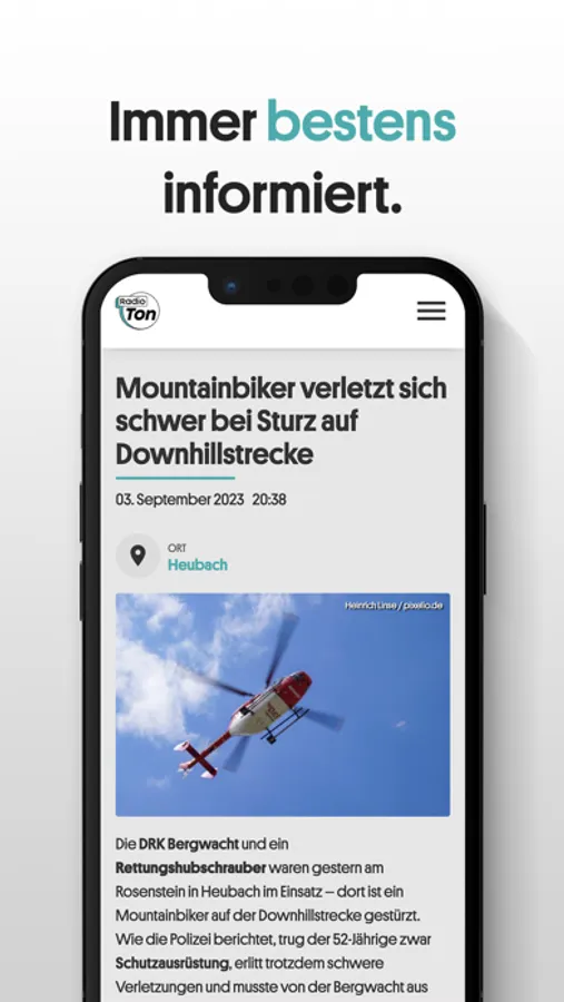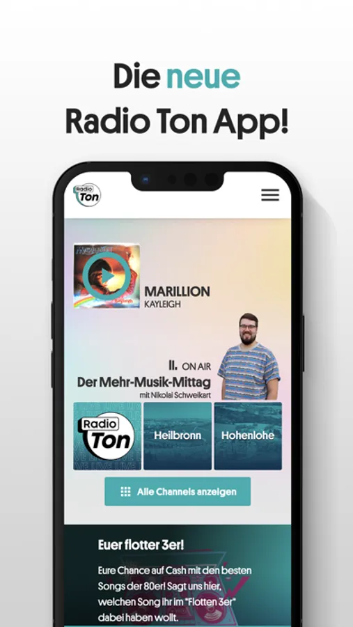 Mit der Radio Ton App empfangt ihr immer und überall den besten Musikmix und die meiste Abwechslung. Ob mit eurem Tablet oder Smartphone – weltweit in herausragender Qualität! Und nicht nur das: Mit der App seid ihr stets auf dem Laufenden, wisst über alle Radio Ton Aktionen Bescheid und verpasst somit nichts mehr!