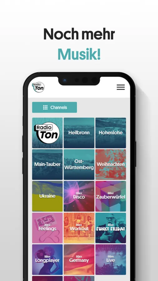 Neben dem allgemeinen Radio Ton Programm können in der neuen App auch alle regionalen Channels, d.h. ein eigenes Programm (z.B. für den Main-Tauber-Kreis, Hohenlohe, Ostwürttemberg oder für Stadt und Land Heilbronn sowie sieben weitere Musikchannels) gehört werden.