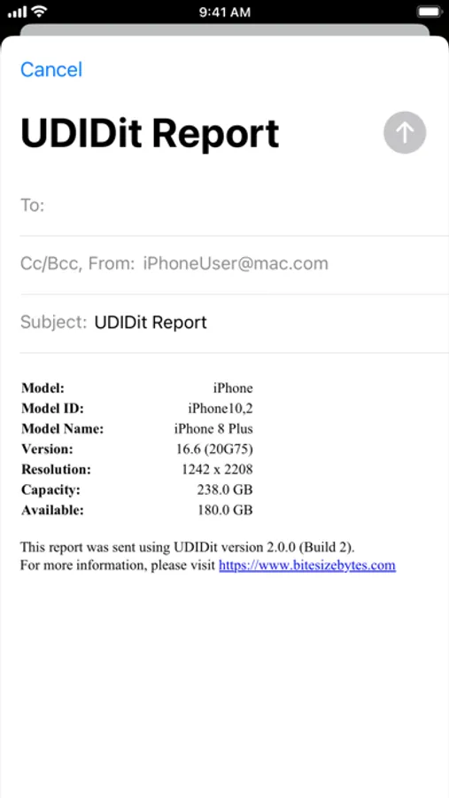 UDIDit makes it simple to retrieve essential device information. By installing UDIDit on an iPhone or iPad, you can easily view and optionally share via Mail or Messages a UDIDit Report that includes the following useful information: