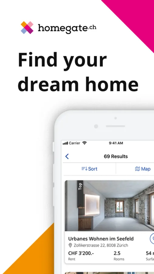 Would you like to rent an apartment or buy a house? At homegate.ch you can quickly and easily search for properties to rent or buy in Switzerland or advertise your own home. We are Switzerland's largest real estate portal with more than 9 million visits each month. Now we offer you the homegate.ch app, which from the very moment you start using it gives you the ability to select between «rent» and «buy» as well as set three search criteria very conveniently just by sliding your finger. For some properties, remote viewings are available. Watch out for the "remote viewing" badge. Your future dream home is surely among our 100,000 ads!