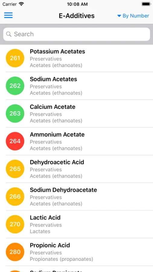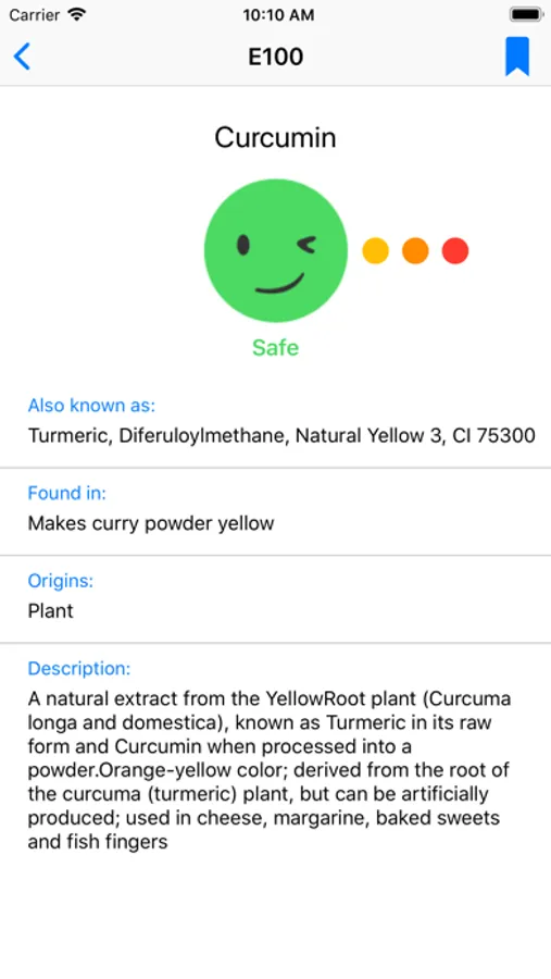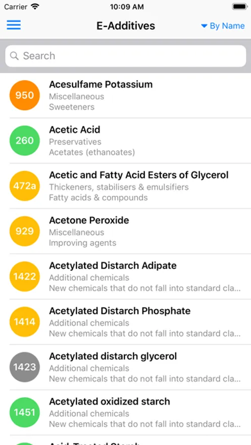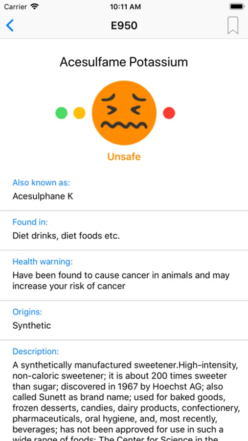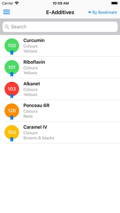 - Search for food additives by name, by danger and by bookmark.